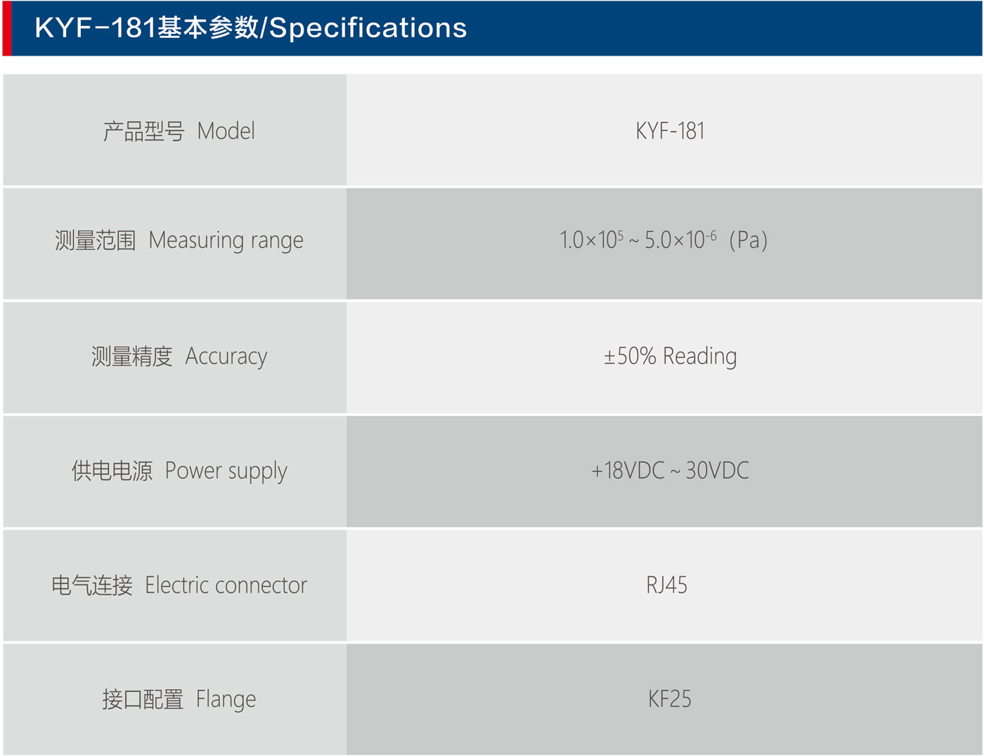 KYF-181 型真空變送器是一款集成了皮拉尼、冷陰極電離傳感器的真空測(cè)量變送器,適用于非可燃性、非腐蝕性氣體。