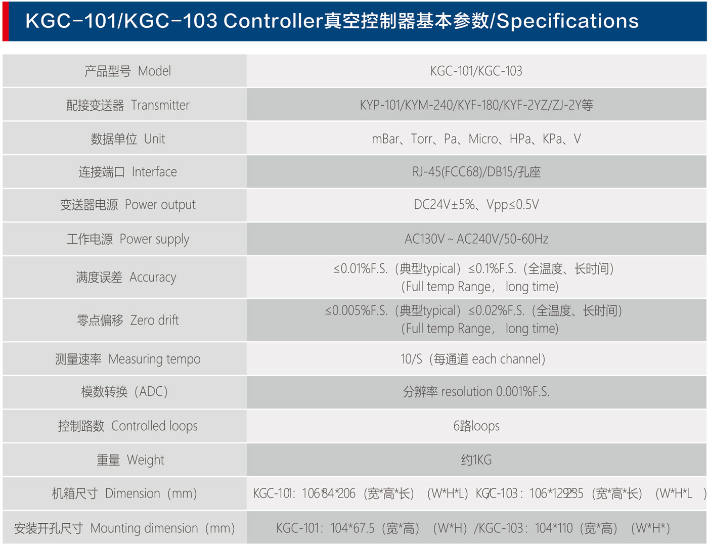 真空控制器KGC-101/KGC-103